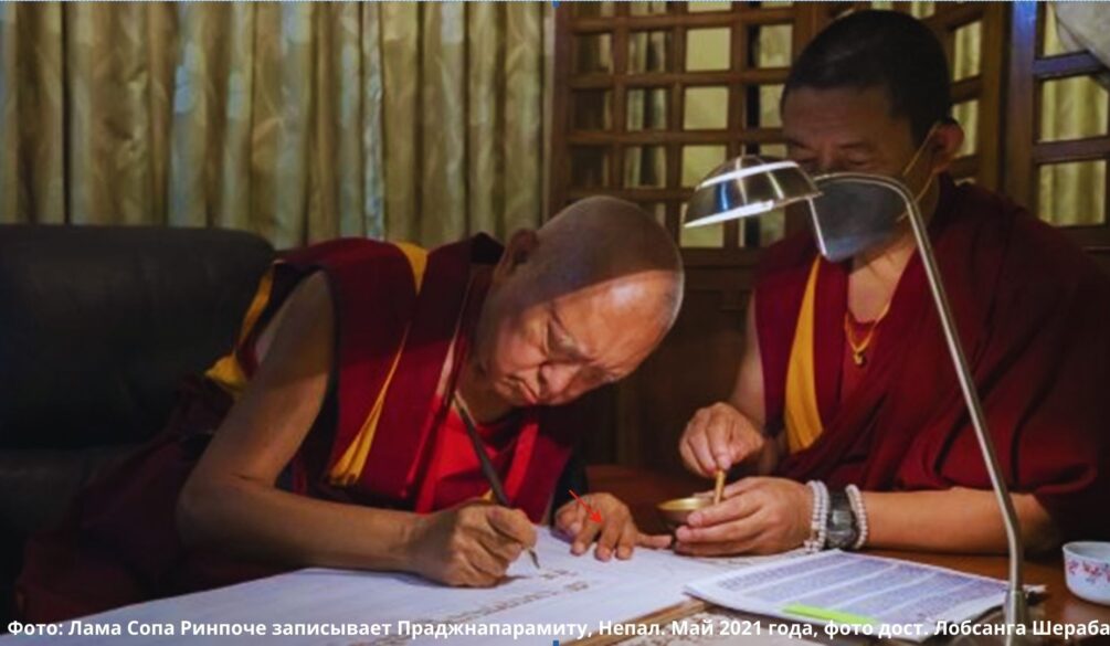 Сердечное сорадование Ламе Сопе Ринпоче, вновь приступившему к переписыванию текста Праджняпарамиты!