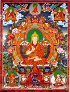 После обширной пуджи, практики «Лама Чопа» или 1000 подношений Ламе Цонкапе, прочтите специальные восхваления Ламе Цонкапе: